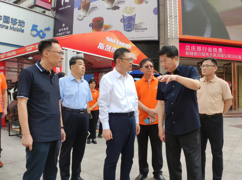 濟(jì)南華聯(lián)商廈集團(tuán)股份有限公司是全國(guó)華聯(lián)商廈集團(tuán)成員單位、全國(guó)百?gòu)?qiáng)商貿(mào)企業(yè)之一,擁有華聯(lián)商廈、嘉華購(gòu)物廣場(chǎng)等三家大型百貨店,以及二十多家超市門(mén)店、近百家便利店和一家大酒店,涵蓋購(gòu)物、休閑、餐飲、娛樂(lè)、住宿等多種業(yè)態(tài),是濟(jì)南市門(mén)店數(shù)量多、網(wǎng)點(diǎn)分布廣的大型商業(yè)集團(tuán)。在嘉華購(gòu)物廣場(chǎng),劉敬濤一行與企業(yè)負(fù)責(zé)人進(jìn)行深入交流,詳細(xì)了解企業(yè)開(kāi)展“店慶”促消費(fèi)活動(dòng)及未來(lái)發(fā)展規(guī)劃等情況。