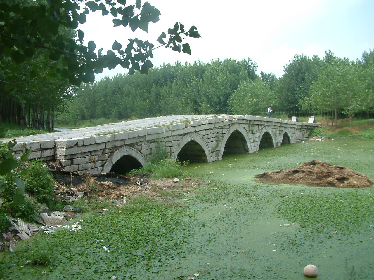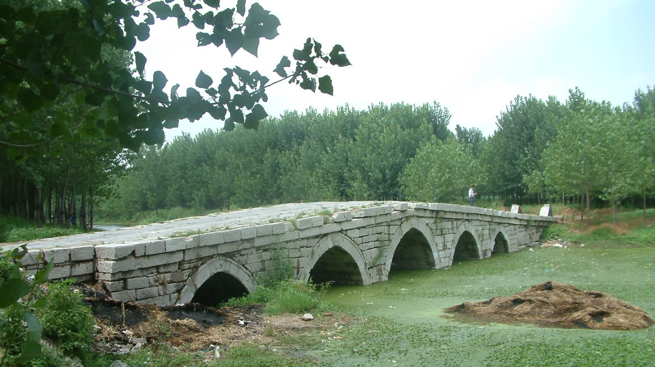 周王莊玉符河石橋 根據(jù)橋南側(cè)的鎮(zhèn)水獸判斷此橋大約建于元朝,據(jù)現(xiàn)場(chǎng)調(diào)查橋弓南側(cè)的石獸比橋弓北側(cè)的石獸較早,說(shuō)明在光緒年間重修過(guò)。橋長(zhǎng)約50米,橋寬5米左右,橋兩端的引橋埋于土下。1965 年前在使用中,是行人、車(chē)輛東來(lái)西行的主要通道。2003年12月18日被槐蔭區(qū)文化局登記保護(hù)。
