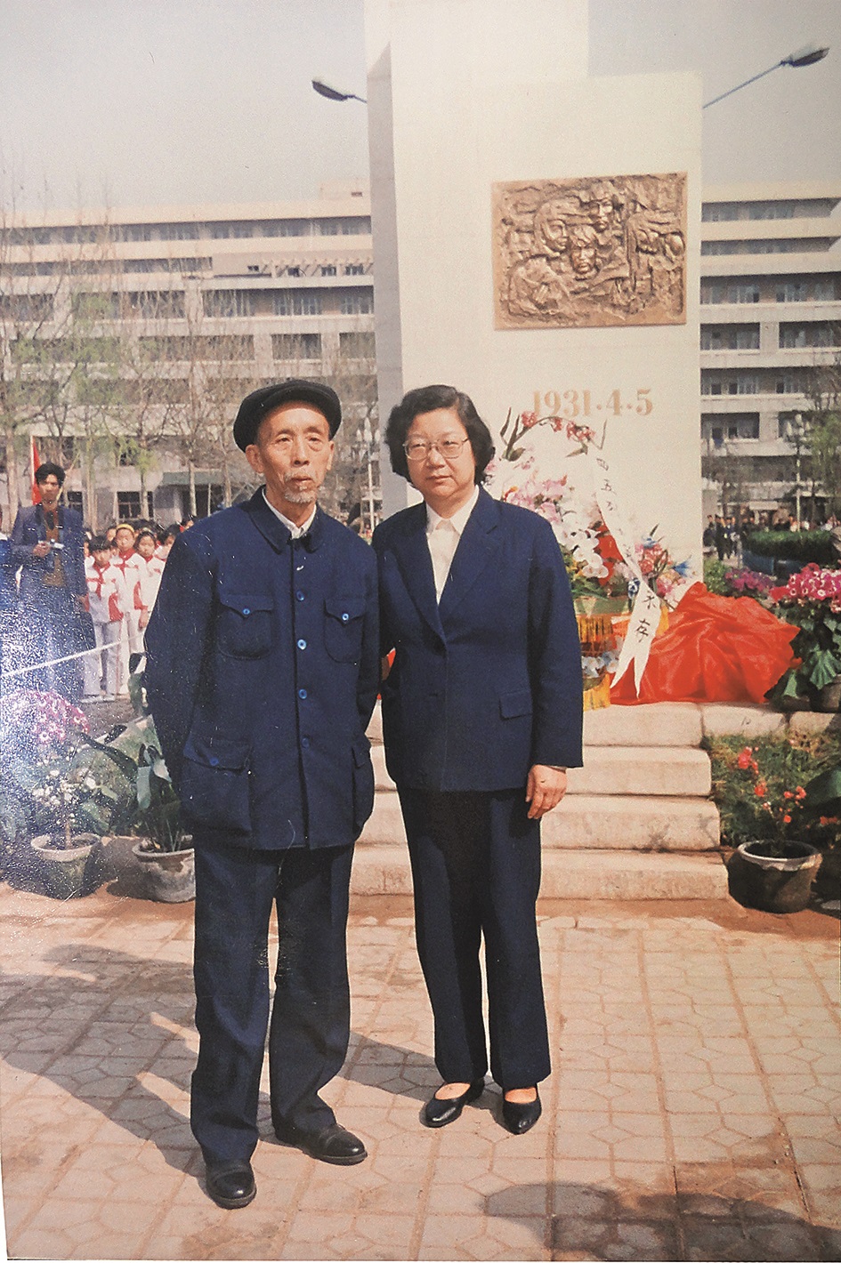 1989年,“四五”烈士鄧恩銘弟弟鄧恩光、劉謙初之女劉松林參加紀(jì)念碑落成揭幕