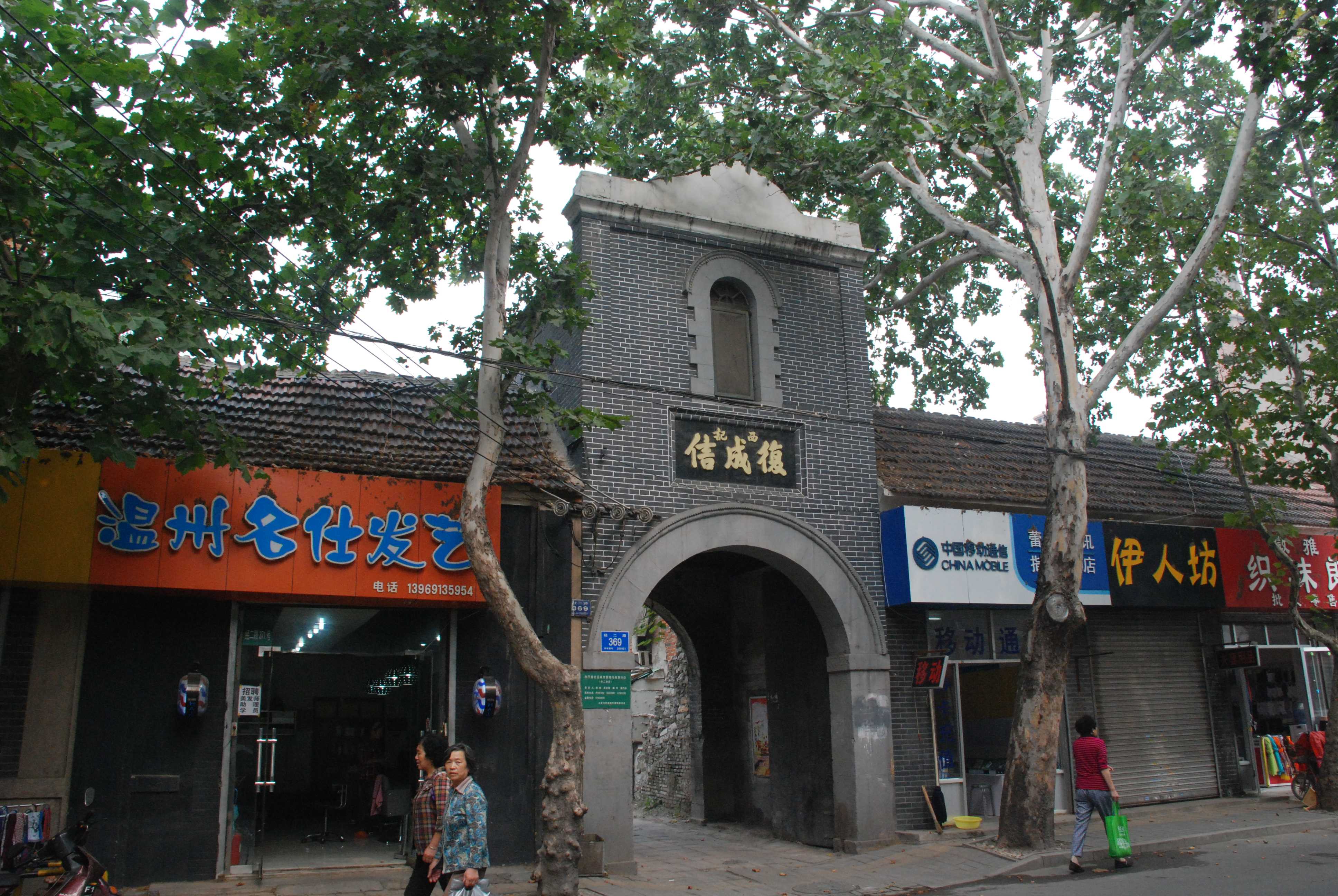 阜成信東記、西記 阜成信東記位于經(jīng)二路363號(hào),建于清宣統(tǒng)元年(1909),建筑坐北面南,主體為傳統(tǒng)中國(guó)古代建筑形式,部分采用西方近現(xiàn)代建筑技術(shù)和材料?,F(xiàn)存建筑平面布局基本保持原貌,平面呈“日”字形。建筑均為二層, 圍合形成東西封閉院落。東院較窄,建筑主要功能為居住、辦公和儲(chǔ)存貴重物品。西院較寬, 上層設(shè)有懸挑檐廊周圈相交。主要功能為商戶儲(chǔ)存貨物和商業(yè)貿(mào)易等。南側(cè)臨街為店鋪,東院設(shè)有大門(mén)可供馬車(chē)通過(guò),進(jìn)院后西側(cè)又設(shè)旁門(mén)可進(jìn)入西院。阜成信西記位于經(jīng)二路369號(hào),建于清宣統(tǒng)元年(1909),建筑坐北面南,主體為傳統(tǒng)中國(guó)古代建筑形式,部分采用西方近現(xiàn)代建筑技術(shù)和材料。原始建筑平面布局由沿街店鋪當(dāng)中的一間設(shè)可供馬車(chē)通過(guò)的大門(mén),進(jìn)門(mén)后為通道,通道兩側(cè)為東西兩路建筑。東路主要功能為住宅、辦公及貴重品倉(cāng)庫(kù)等,原始最少為南北三進(jìn)院落,現(xiàn)僅保留了南院部分建筑。西路建筑為南北兩進(jìn)封閉院落,后院上層設(shè)有懸挑檐廊周圈相交,其東西廂房的部分和南房已被拆除。南院沿街和東西廂房為一層,其他建筑均為兩層。建筑主要功能為商戶臨時(shí)居住、儲(chǔ)存貨物和商業(yè)貿(mào)易等??谷諔?zhàn)爭(zhēng)期間,“阜成信”受日軍擄掠元?dú)獯髠?,抗日?zhàn)爭(zhēng)結(jié)束后關(guān)門(mén)歇業(yè)。新中國(guó)成立后,阜成信建筑群產(chǎn)權(quán)歸槐蔭區(qū)房管局,濟(jì)南商業(yè)儲(chǔ)運(yùn)公司作為辦公地點(diǎn)。20世紀(jì)90年代,濟(jì)南廣友物流配送集團(tuán)有限公司出資收購(gòu)阜成信東記產(chǎn)權(quán),并負(fù)責(zé)日常管理、維護(hù)和安全防護(hù)等事宜。
