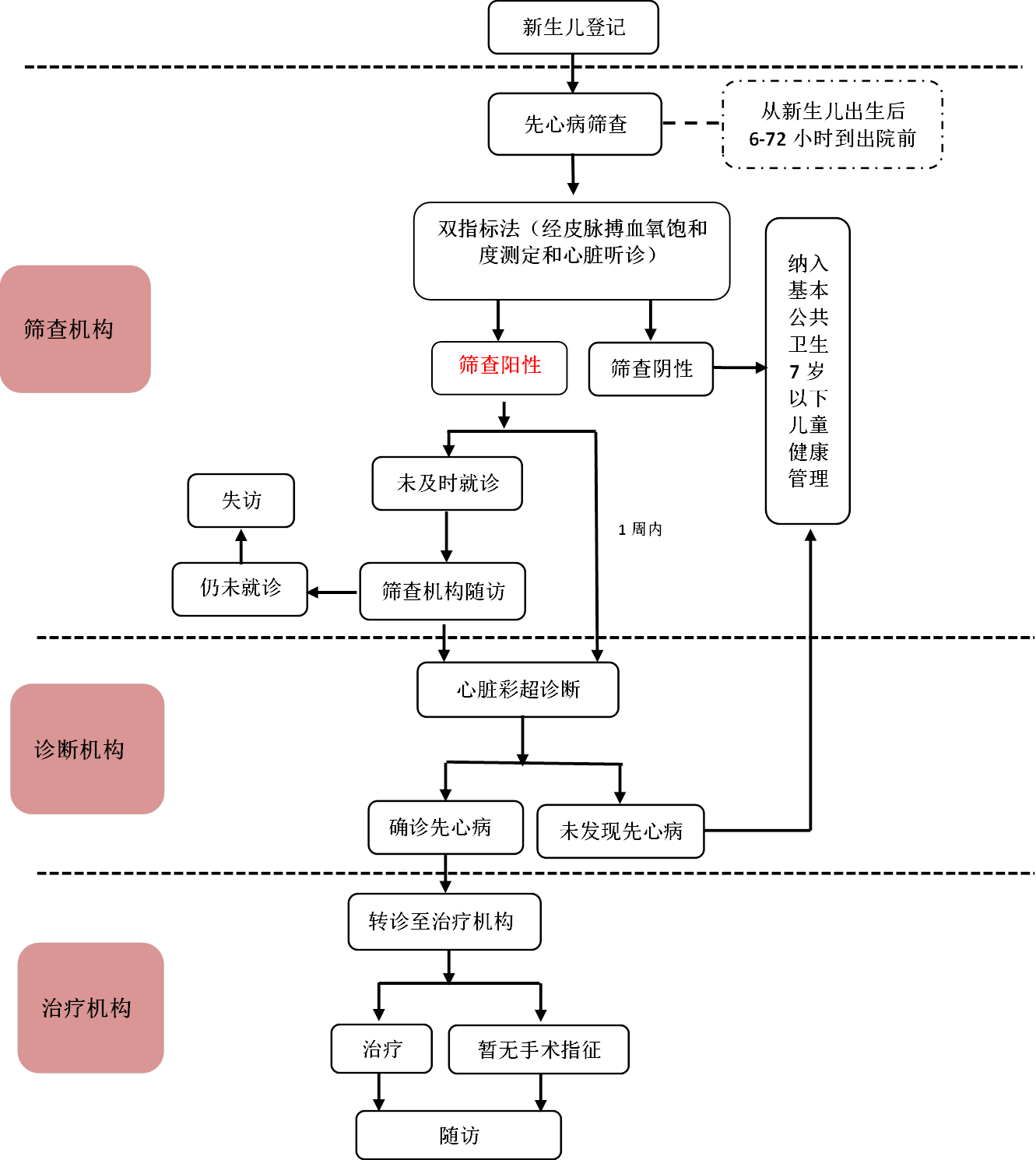 1.助產(chǎn)機(jī)構(gòu):按照《全國新生兒先天性心臟病篩查手冊》(2018年版)要求,正常新生兒從出生后6-72小時(shí)到出院之前在助產(chǎn)機(jī)構(gòu)完成篩查,陽性患兒應(yīng)當(dāng)在出生后7天內(nèi)轉(zhuǎn)診至省級(jí)衛(wèi)生行政部門指定的新生兒先天性心臟病診治機(jī)構(gòu)接受超聲心動(dòng)圖診斷。